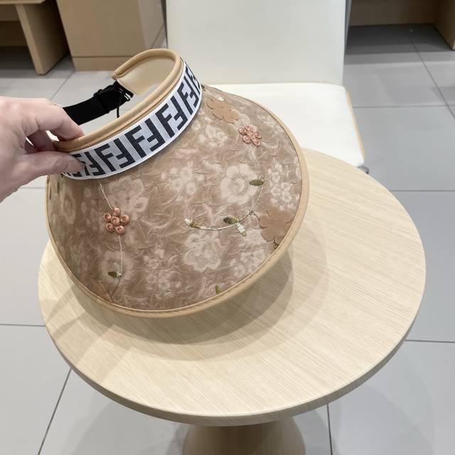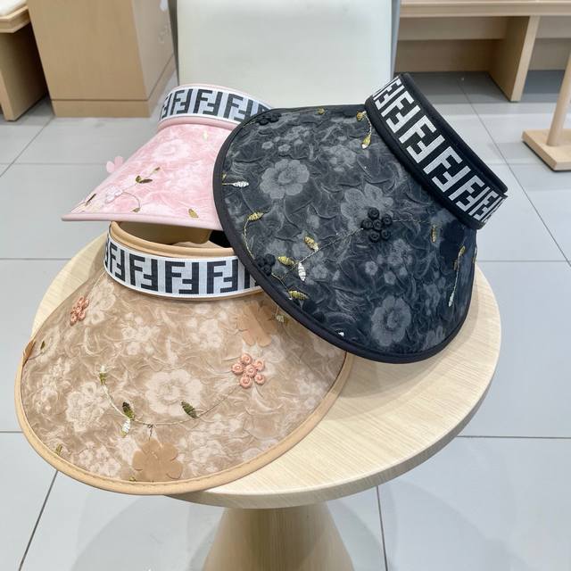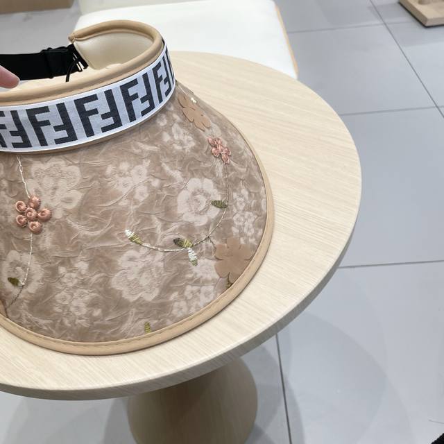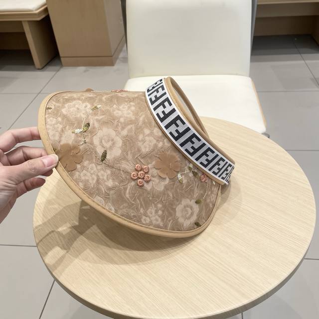 Fendi Women's Summer Chinese-Style Fashionable Sun Hat With Wide Brim, Uv Protection, Ethnic-Inspired 3D Flowers, Outdoor Open-Top Hat