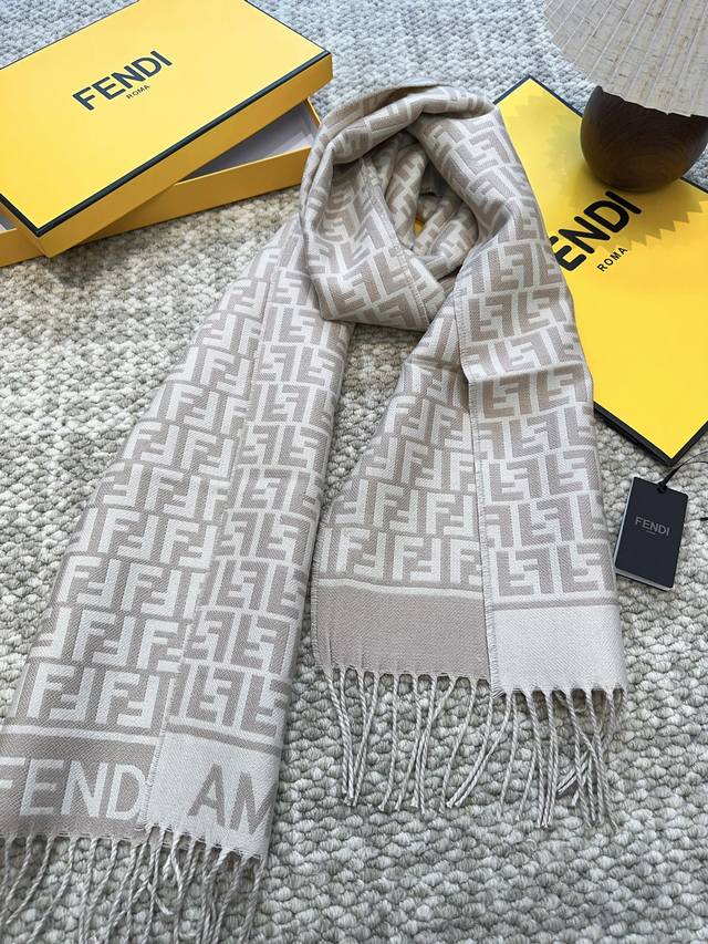 Fendi's hottest scarf this year, the monogram 'F' letter design, is a limited edition, top-quality item that's hard to find even with money in boutiques. It's a genuine, high-quality piece, made with the same materials as the real thing. Such a scarf requires a lot of raw materials, and it's said that many boutiques are currently out of stock. It's incredibly versatile and instantly elevates your style. Compare it to the authentic version; they're practically identical. The tags, serial numbers, hangtags, and main labels are all exactly the same. This is a Hong Kong company export order, so consider yourself lucky to have it. Don't worry about the limited quantity; this size is becoming increasingly rare, so cherish it. The effect when worn is incredibly powerful! It's hand-combed. Absolutely heavyweight! Unlike the usual scarf construction, this one has a unique effect, soft to the touch, with a high-quality feel, fine and distinct yarns, and a very stylish cut. Even a photo taken with a phone will amaze you. High-density, meticulous craftsmanship