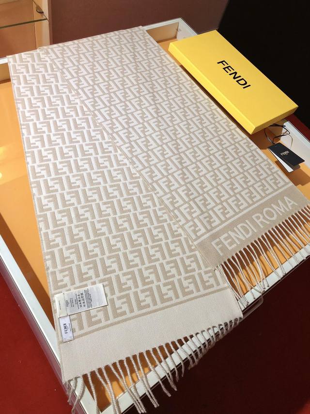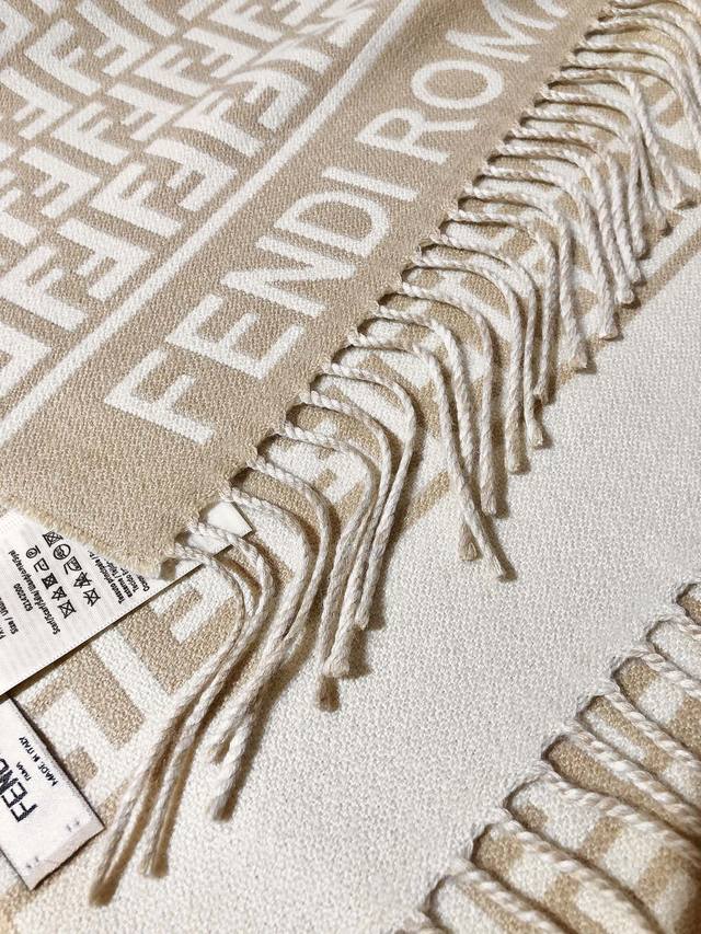 Rfd2409 Universal Couple Scarf, Fendi FF, updated simultaneously with the official website. Made of wool jacquard knit, it's soft, comfortable, luxurious, and textured. Crafted with a two-tone interwoven jacquard technique, the colors are interchangeable on both sides. It features matching double stripes for a simple, elegant, and fashionable finish. The actual product is very high-end and a rare find. Good things don't wait, so don't miss it! 32X200Cm 80% Wool 20% Cashmere