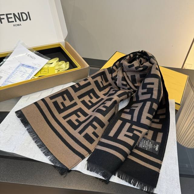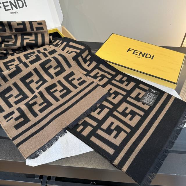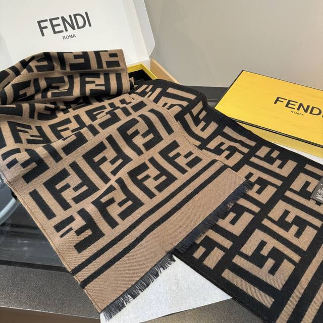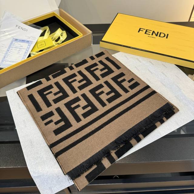 Size: 35* cm Here it comes! Fendi's elegant and graceful scarf, which is always in high demand and sells out quickly, is so beautiful! This year's autumn/winter scarf has a caramel-like feel. The wool scarf is incredibly soft and has excellent warmth retention, very stylish! It's really cool! The weather is getting colder! You can wear it as a shawl now!
