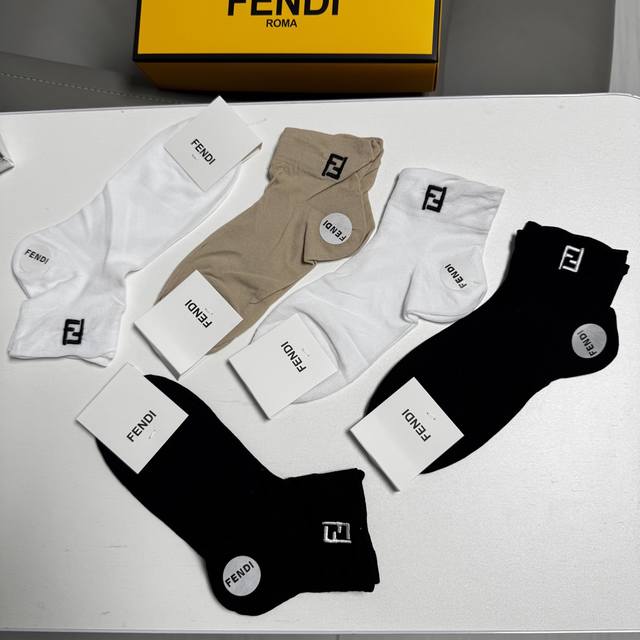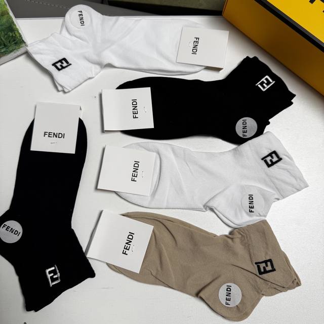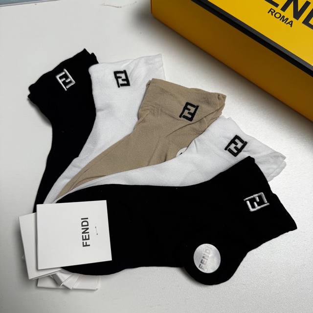 Special Fendi Fendi Ff new women's socks, one box of five pairs of lightweight style, classic double F letter embroidery, breathable, soft and comfortable, super popular small single item, big brand out, trendy must-have, super easy to match
