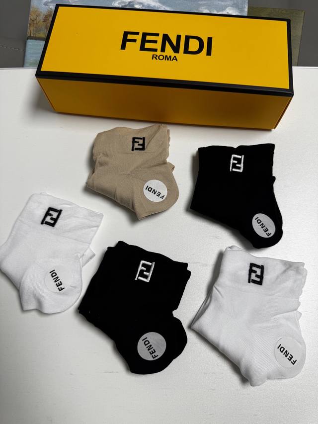 Special Fendi Fendi Ff new women's socks, one box of five pairs of lightweight style, classic double F letter embroidery, breathable, soft and comfortable, super popular small single item, big brand out, trendy must-have, super easy to match