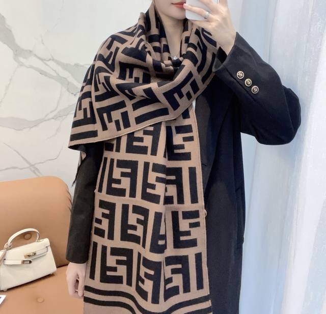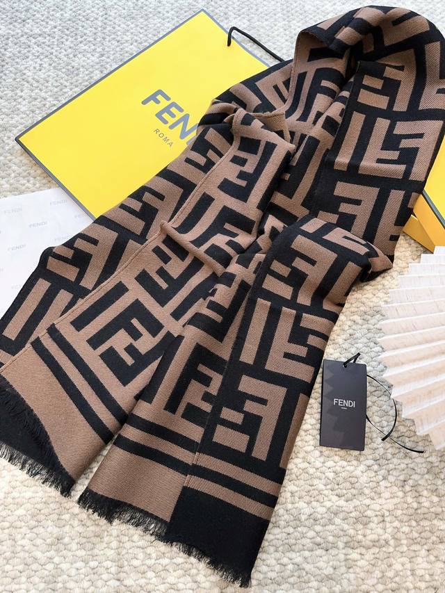 This is a limited edition Fendi scarf, the hottest item this year, with the monogram FF logo that everyone's scrambling to buy. It's a top-quality piece, extremely rare even in boutiques, and hard to find even with money. It's made with the same high-quality materials as the real thing, and it's said that many boutiques are currently sold out. It's incredibly versatile and instantly elevates your style. Compare it to the authentic version