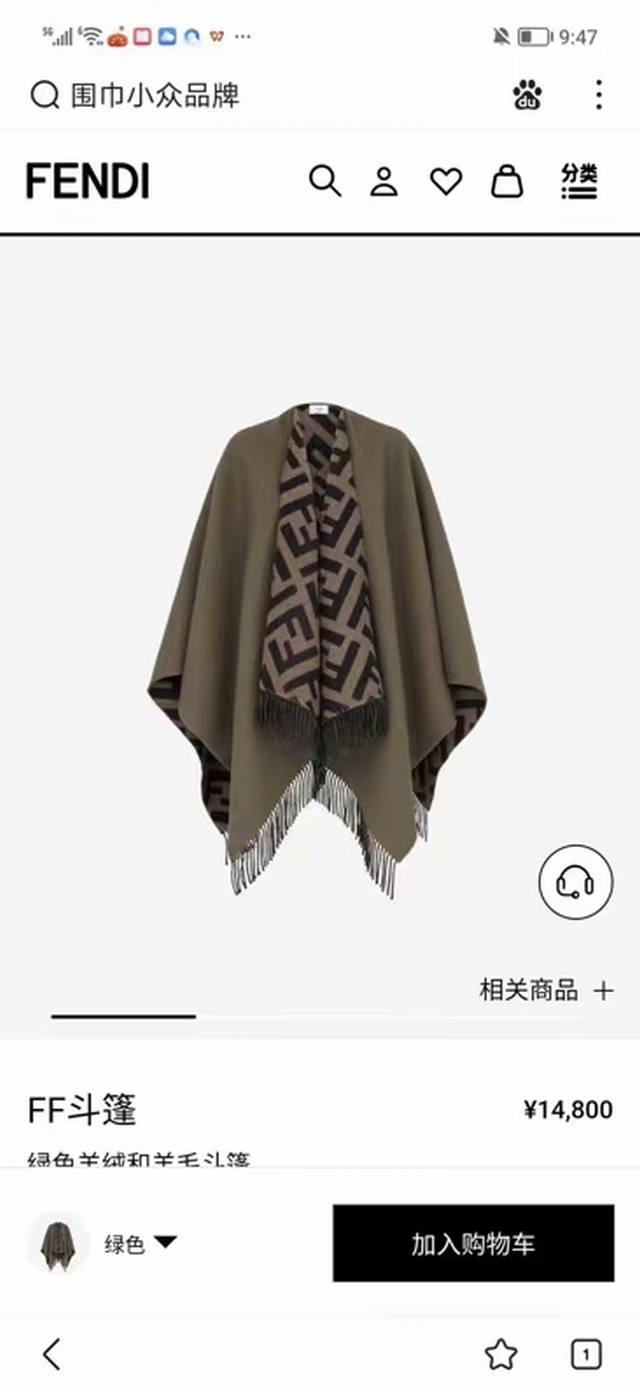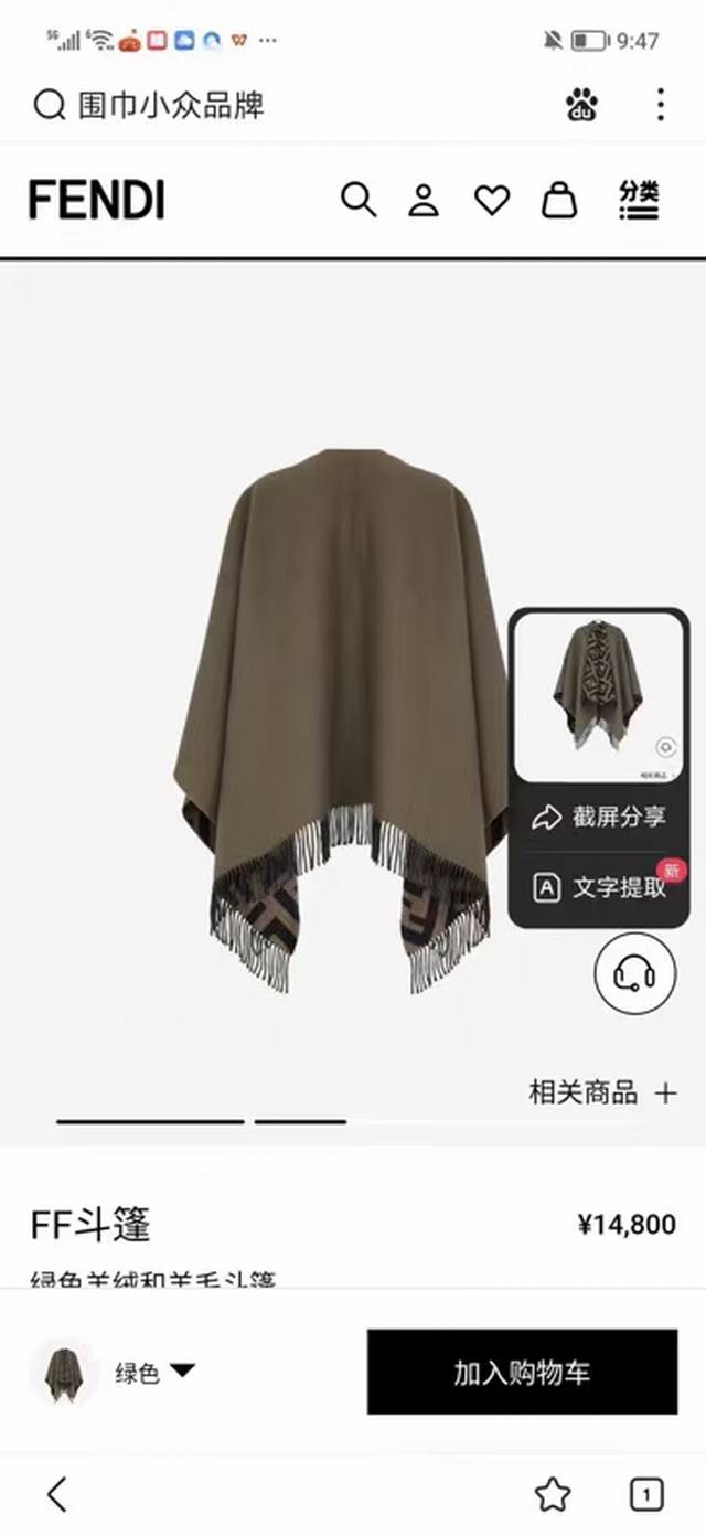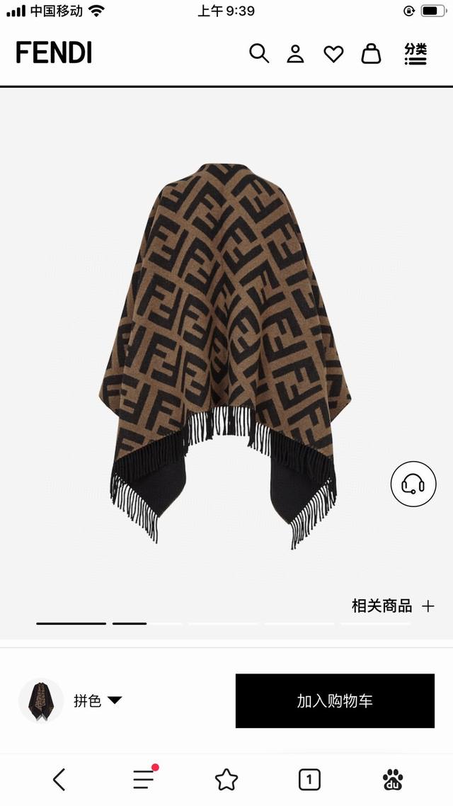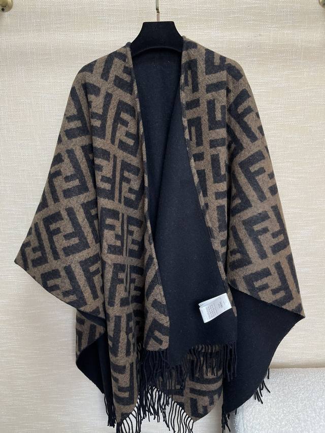 Top-quality original Fendi heavyweight new classic Ff monogram cape with monogram elements, extremely high quality. Originally priced at 15,500 RMB in boutiques, this is a newly released item, a truly high-quality piece. Made with genuine, heavyweight materials, this piece requires a lot of raw materials and will definitely be sold out in boutiques by winter. The Ff trend is currently very popular; it's said that many people buy the entire Ff collection in boutiques. There are also some photos from online resellers; check out their photos for details like the overlock stitching, neck label, and rolled edges. Compare them to ours