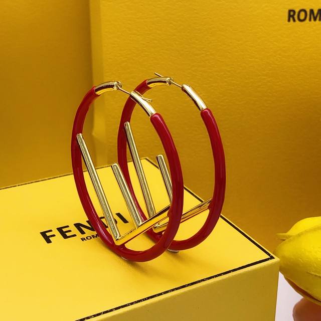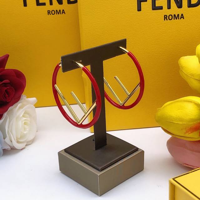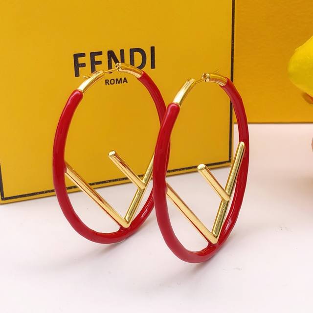 / Item No. Fded0011 Fendi Earrings, Red F Letter, Gold Ddd