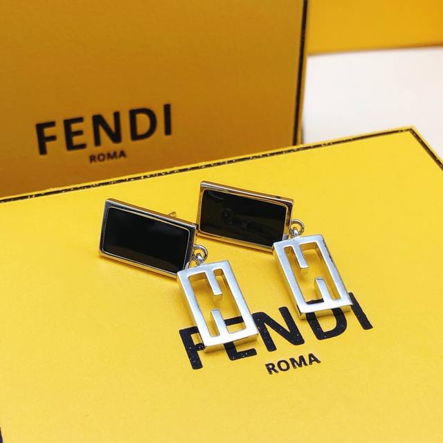 / Item No. Fded0053 Fendi square stud earrings, black Ddd