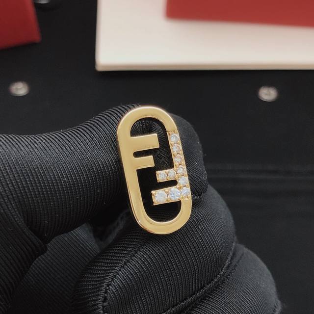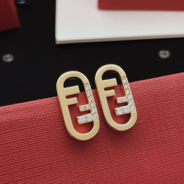 Fend* Latest style polished diamond-encrusted earrings, consistent with batch Z, made of brass.