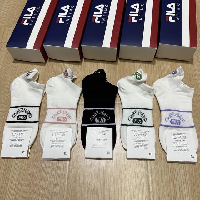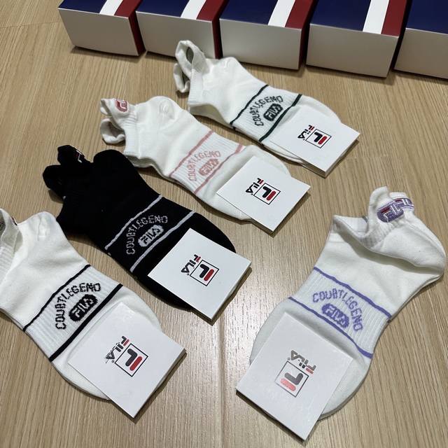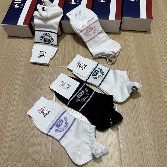 Special Fila new women's socks, one box of five pairs of jacquard classic logo, super soft and comfortable, super popular small single product, big brand out, trendy must-have, super easy to match