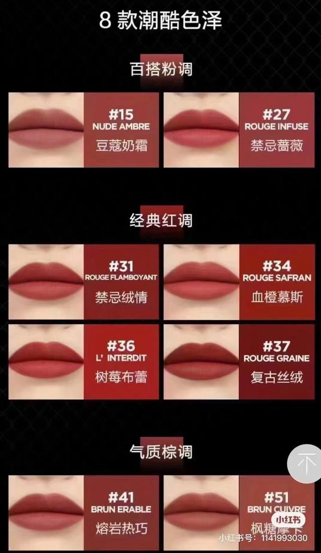Givenchy velvet lambskin lip glaze color number: 10-15-27-31-34-36-37-41-42-51-53.