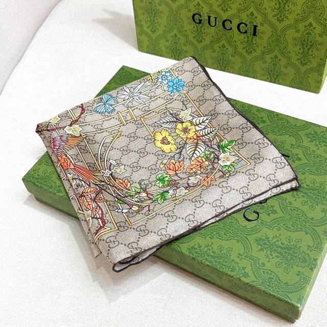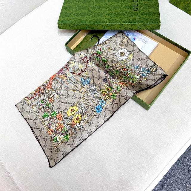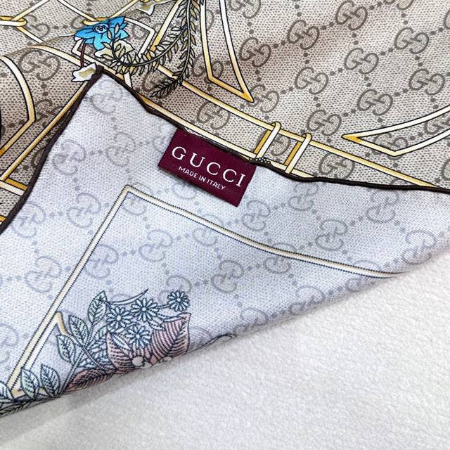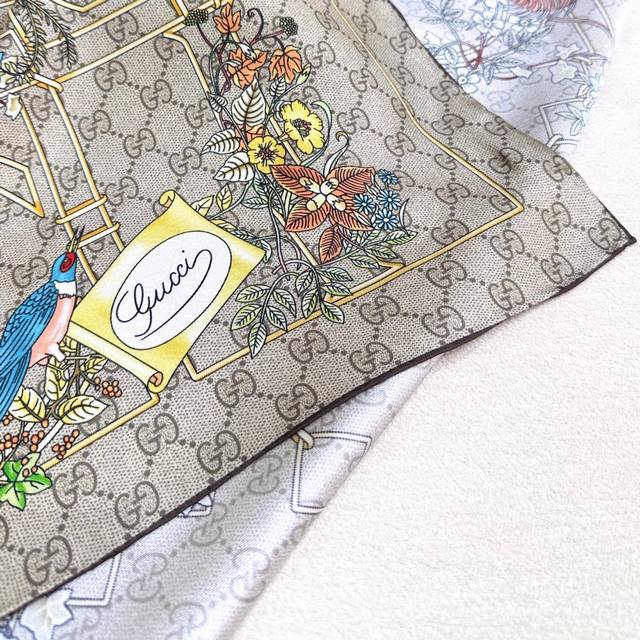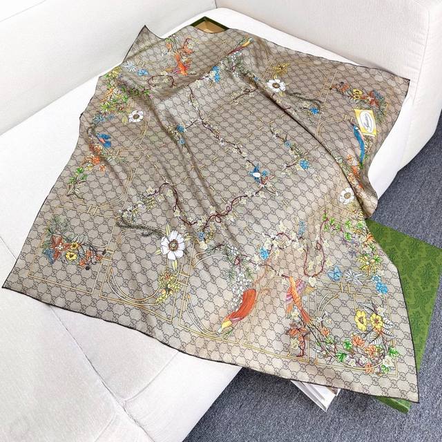 18 momme reversible animal and floral print silk scarf - Gucci. The iconic Gucci pattern shines against a backdrop of striking new prints. This scarf is meticulously adorned with animal and floral prints, showcasing Gucci's design inspiration drawn from nature. Multicolor Gucci animal and floral print brown twill silk, 90cm x 90cm , Italian creation.