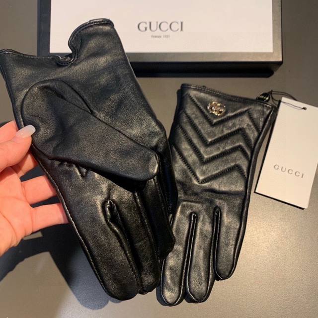 2025 new Gucci curve new exclusive first touch screen women's gloves Gucci Gucci original quality official website synchronized new high-end sheepskin gloves goddess first choice can not be missed 100% imported sheepskin leather fine soft leather look imported sheepskin unique feel cashmere lining for better warmth original custom hardware top workmanship no detail is missed authentic open version counter one to one matching full set packaging size: M L