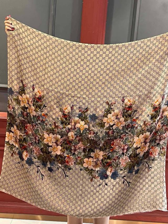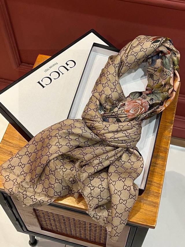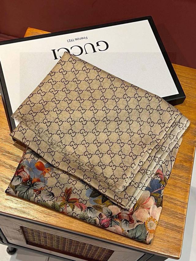 Beautiful inside and out, stunningly gorgeous! I absolutely love the look of this Gucci New~ 300-count high-end ring velvet! The design is truly breathtaking; the floral element is so sophisticated, exuding a mature and elegant femininity. The four colors are also perfect for everyday wear. The actual product is beautiful. Made of Baby Cashmere high-end cashmere, the fabric is soft, the printing is exquisite, and the texture easily passes through the scarf buckle. The high-end quality and lightweight feel are incredibly comfortable. A must-have for summer travel and air-conditioned rooms. Even more beautiful in winter. Limited stock available! 110*200 top-grade imported 300 pure cashmere ring velvet long scarf, four colors.