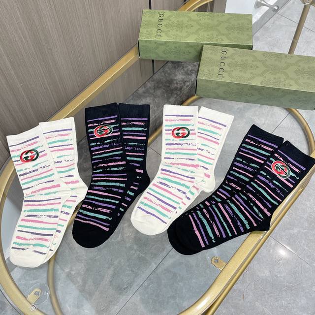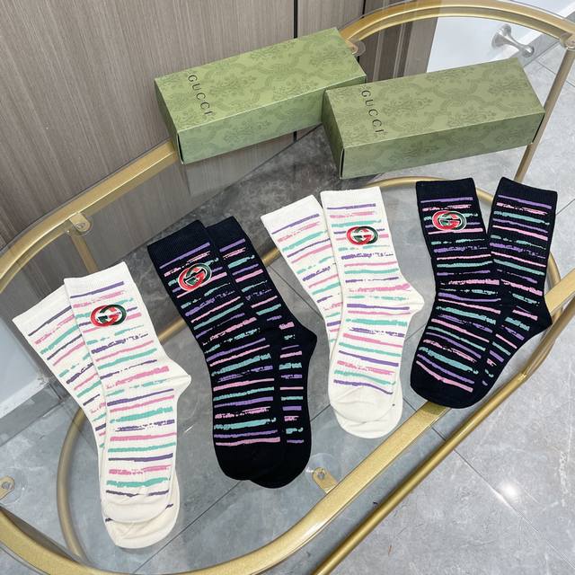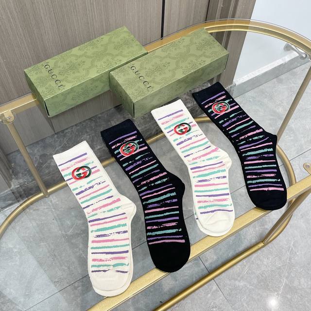 Comes with a box of four pairs of Gucci Gg limited edition series ~ Gucci's Gg series has never disappointed, this time the sporty style is fully displayed, Instagram celebrities recommend it very popular. Pure cotton material, light, soft and breathable, suitable for all seasons, a must-have for European and American street brands