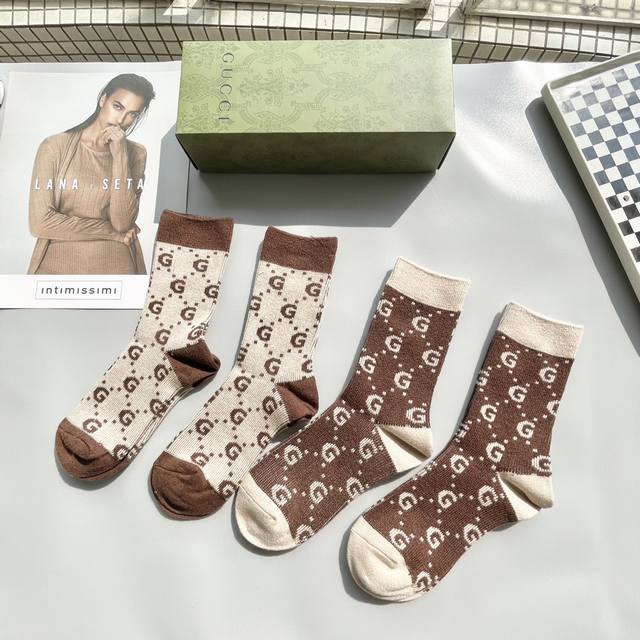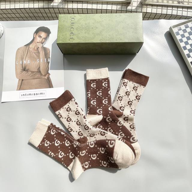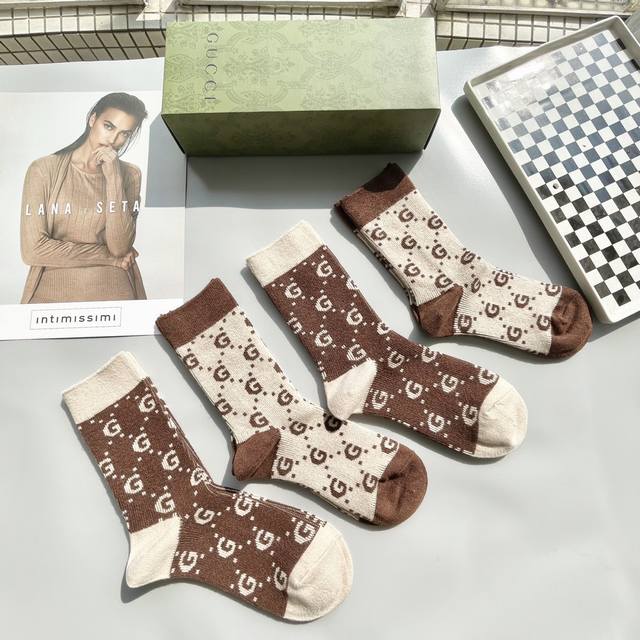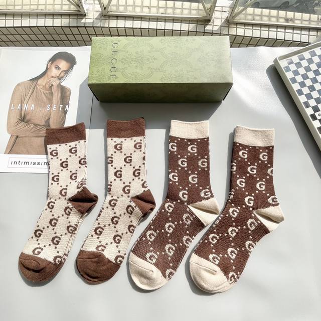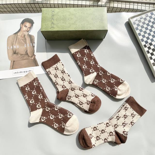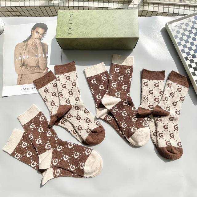 comes with a box of four pairs of Gucci high-end versions~ Gucci socks are so beautiful, cashmere socks, super soft and fashionable. Gucci counter purchasing quality mid-tube socks are a must-have for trendy people. The combination is super high-end and fashionable. Recommended, recommended, recommended~ A must-have fashionable small item! ! !