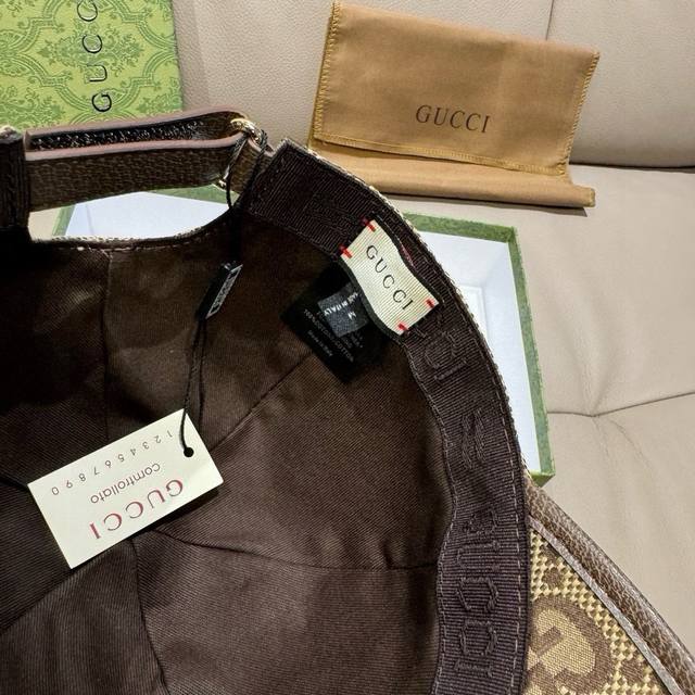 comes with a packaging bag, a new Gucci baseball cap, Gucci gold stamping, the latest counter style, 1:1 mold opening and customization, genuine mold opening, original canvas material + first layer cowhide, original factory quality! Excellent quality, basic head circumference 56, patch is adjustable.