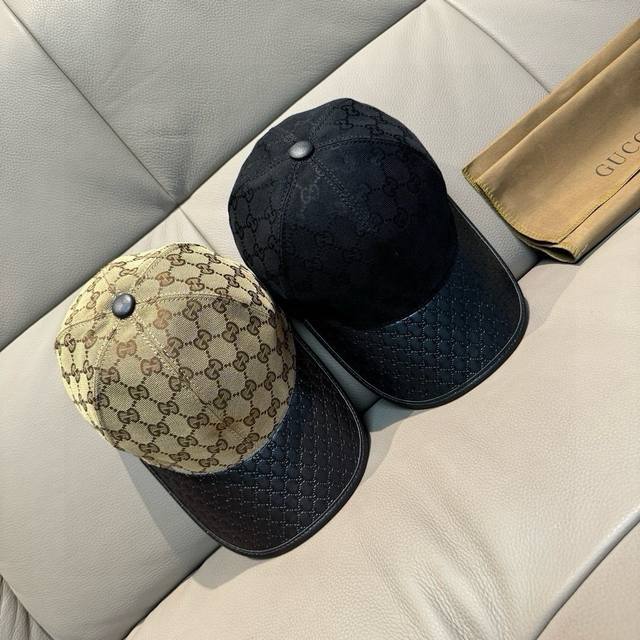 Comes with box and tote bag, classic Gucci baseball cap, original single-piece design, small double G leather patchwork, 1:1 mold customization, superb quality! The brim is made of top-grain cowhide with embossed details, excellent quality! Basic head circumference 56cm, adjustable patch, original retail version in two colors, hot-selling item!