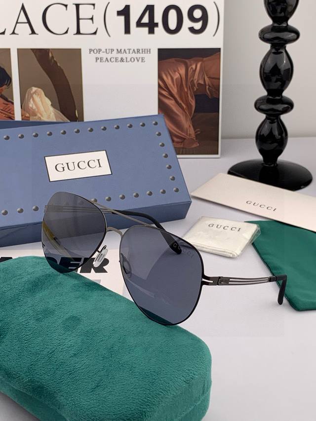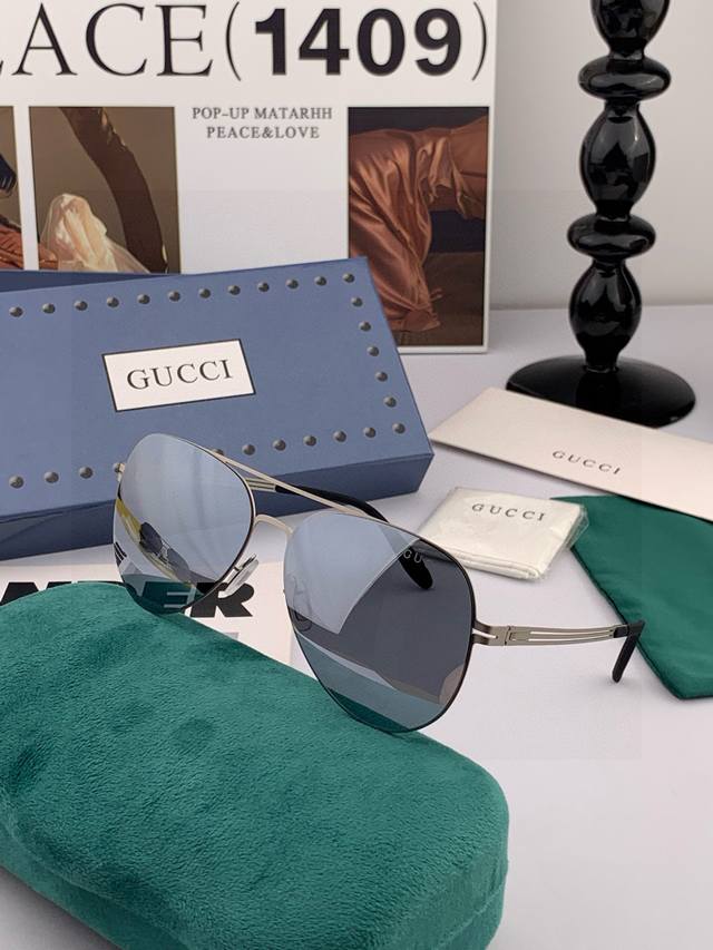 Gucc* 2025 new men's and women's couple's models with sunscreen IP electroplating that never fades. Selling point: Ultra-light and flexible. The entire frame has no screws and is crushproof. Lenses: High-definition nylon polarized lenses. Model: G1502