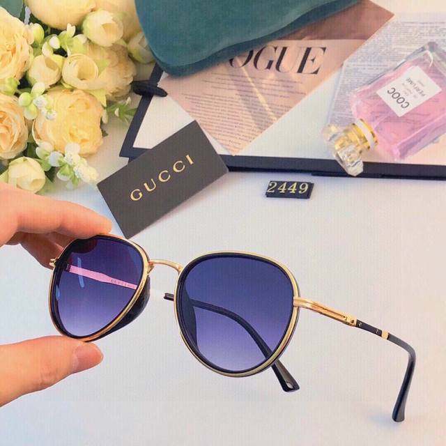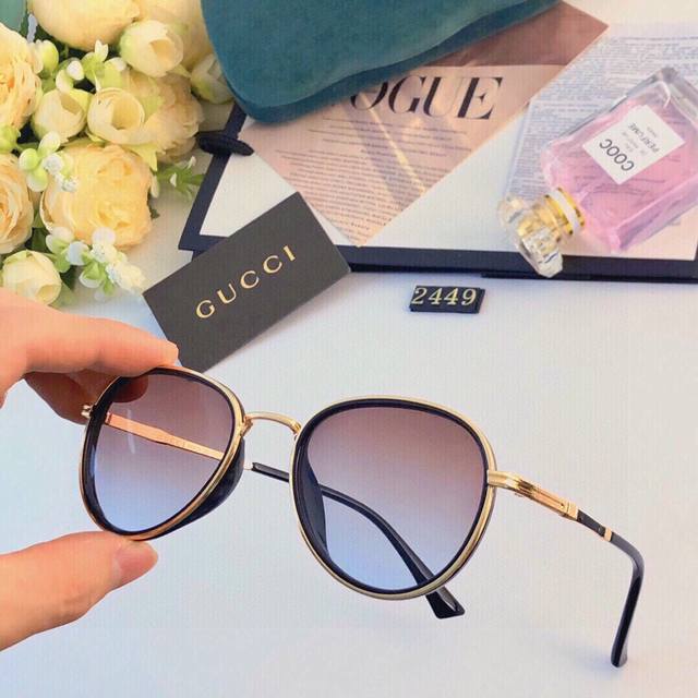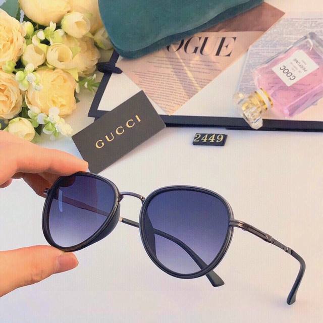 Gucc* Anti-UV Sunglasses Women Korean Retro Sunglasses Ins Internet Celebrity Same Style Travel Street Shooting Men and Women Couples Small Frame