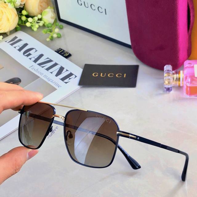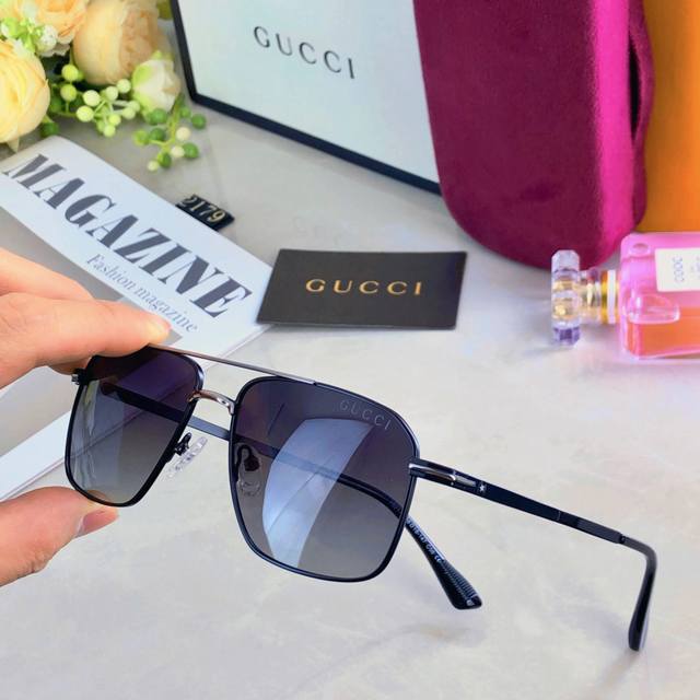/ Gucc* High-quality polarized sunglasses for men, metal frame, gradient color sun