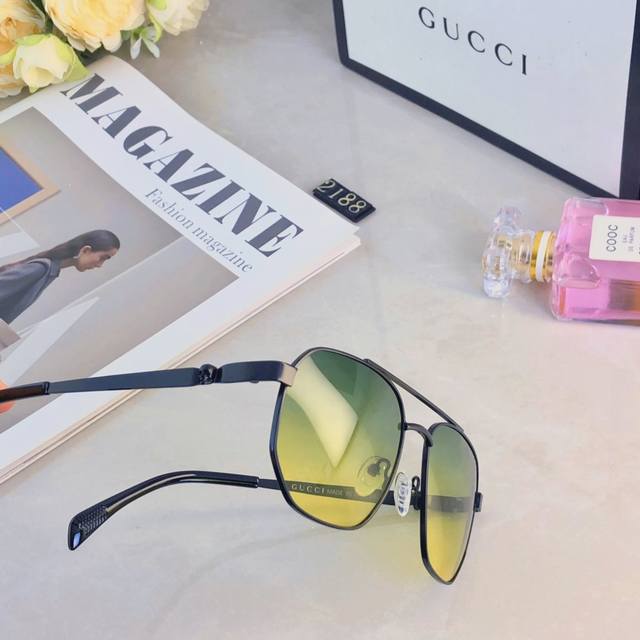 / Gucc* Men's square large frame driving and fishing polarized special light sungl