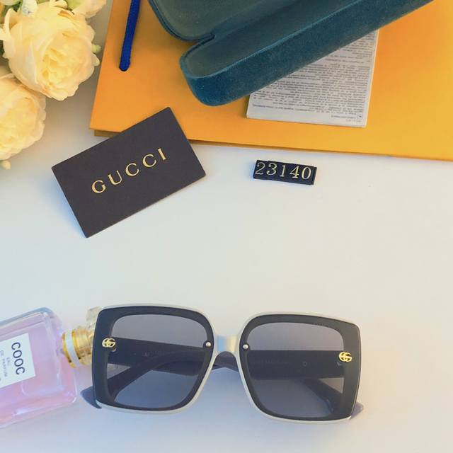 Gucc* New High-End Square Sunglasses for Women, Fashionable and Niche, UV400 Elegant Sunscreen Sunglasses for Travel