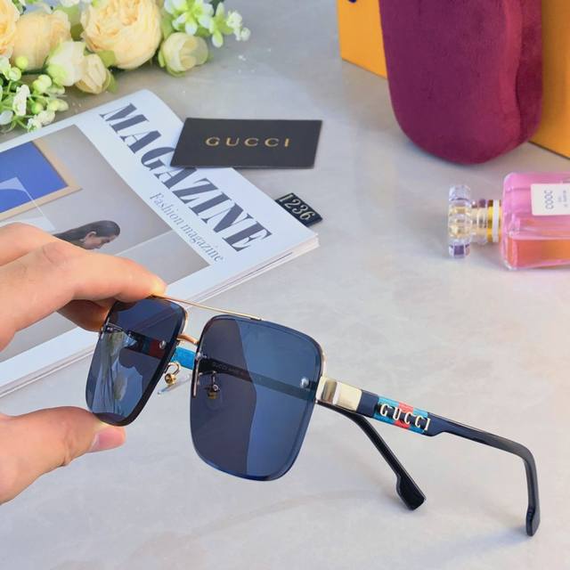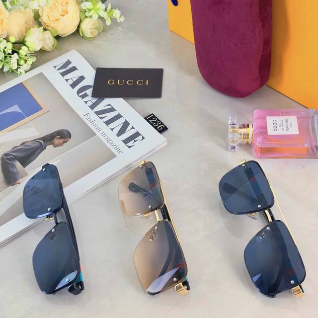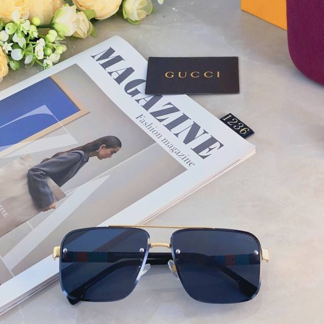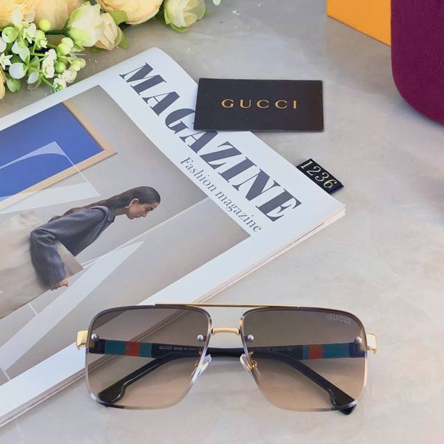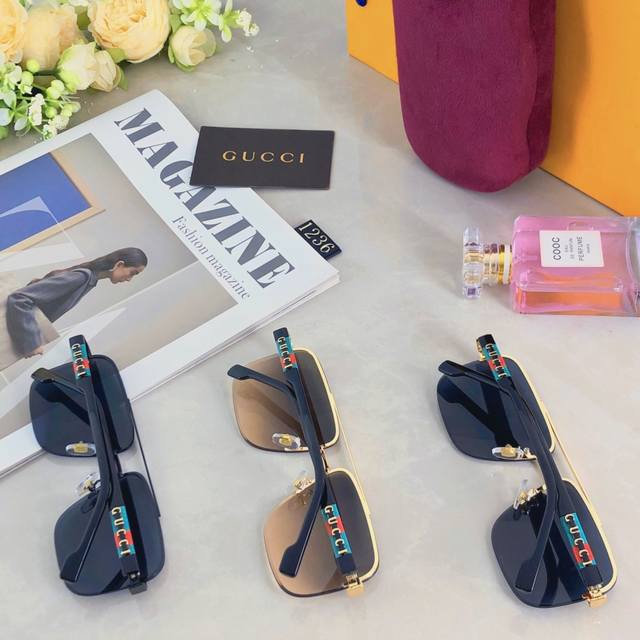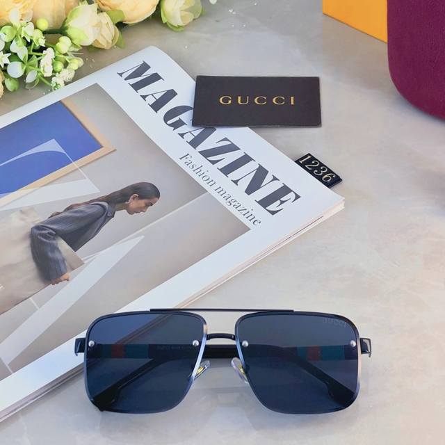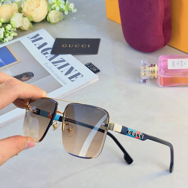 Gucc*European and American retro sunglasses metal double beam high-end business style sunglasses UV400 sun protection