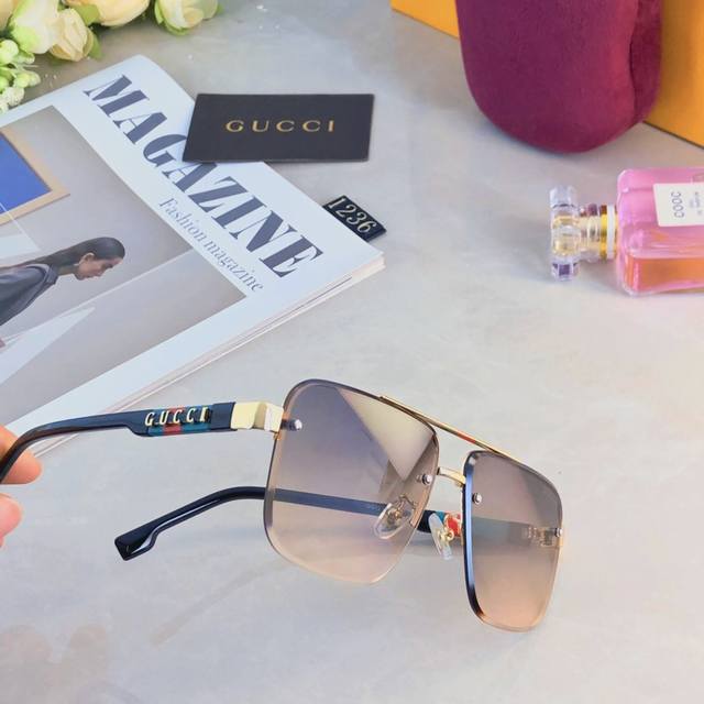 / Gucc*European and American retro sunglasses metal double beam high-end business