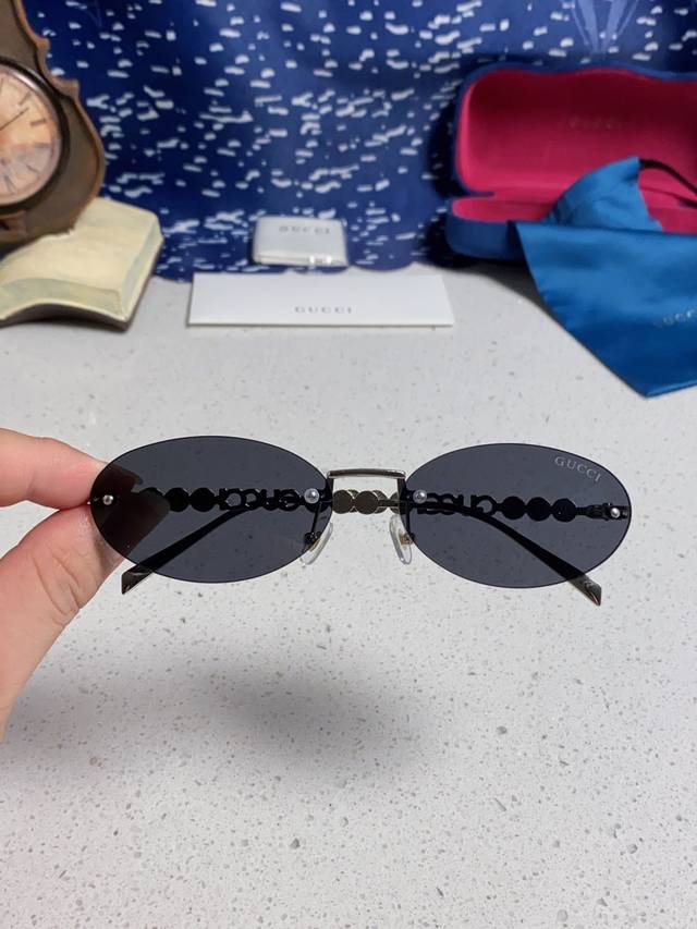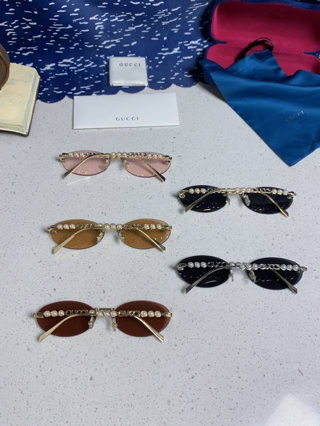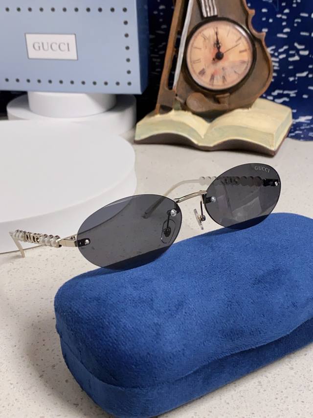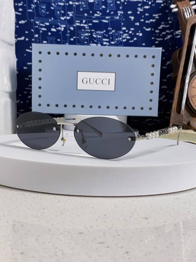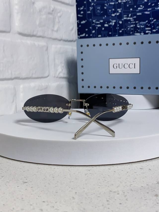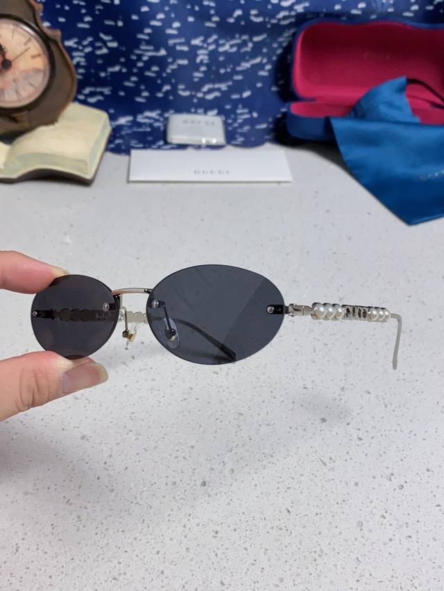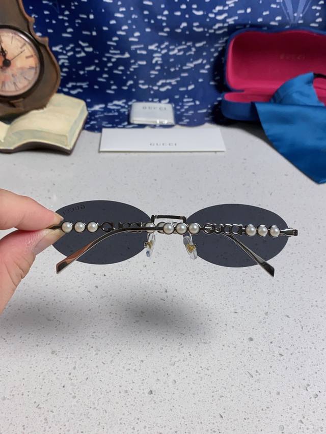 Gucci 2025 European and American high-end women's round pearl sunglasses, European style, Xiaohongshu avant-garde driving and travel sunglasses Gg1922