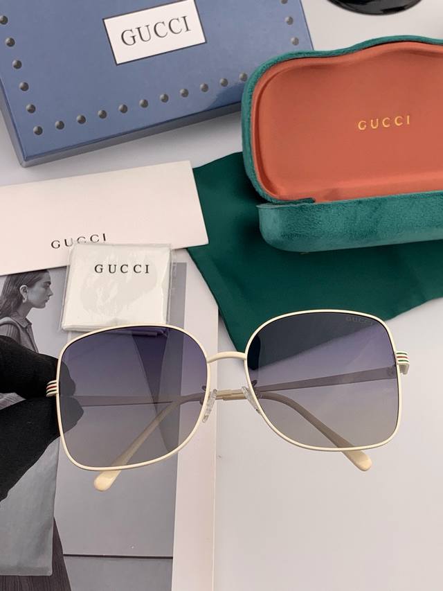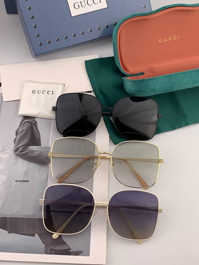 Gucci 2025 Spring New Arrival Square Frame Sunglasses. Popular among online influencers, these sunglasses exude a powerful yet playful and sweet vibe. They look even better on the face. Excellent metallic finish. Model: G6730