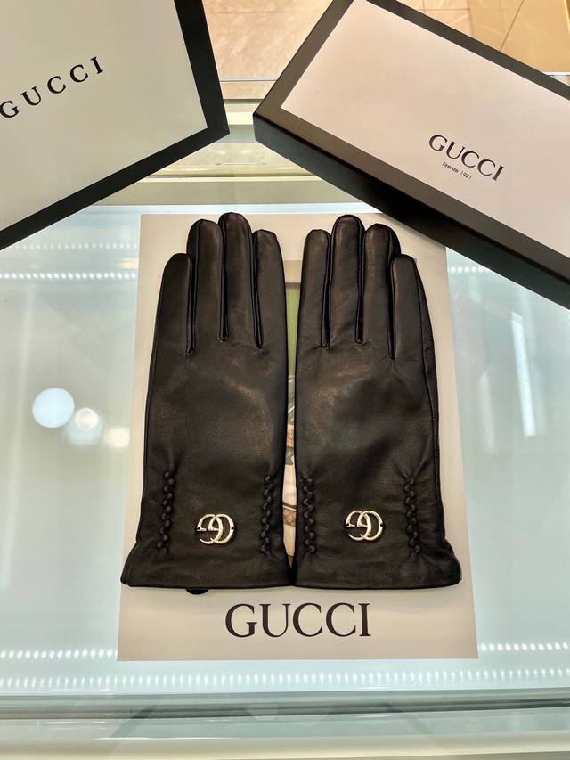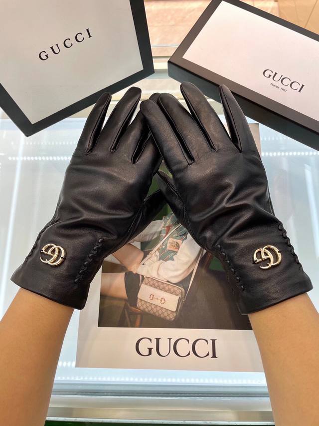 Gucci autumn and winter women's gloves made of domestic first-class sheepskin leather, ultra-thin, soft and comfortable, with excellent texture, one size