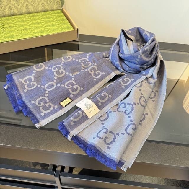 Gucci Classic Reversible Scarf for Men and Women! Size: 70cm*205cm Material: 50% Silk, 50% Wool
