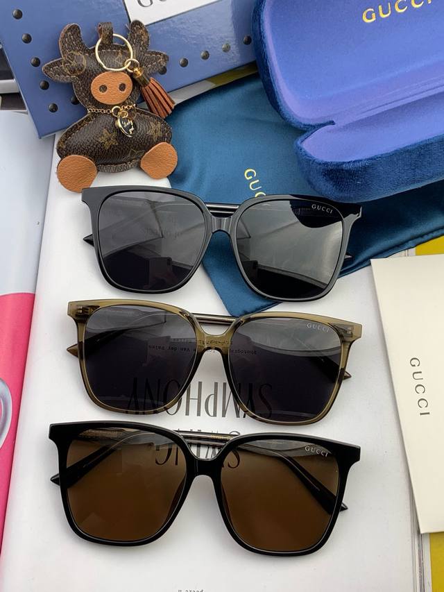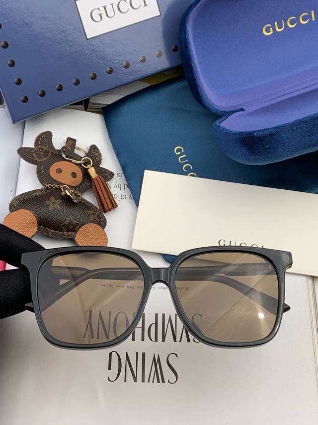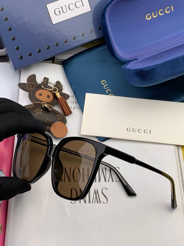 Gucci couple's style, classic square frame design, flattering for all face shapes, looks great with coats or dresses. High-definition polarized lenses protect against UV rays. Model: G002