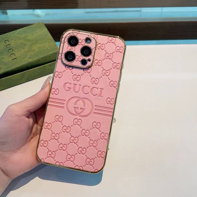 Gucci electroplated side sticker embossed mobile phone case full cover fine hole mobile phone case