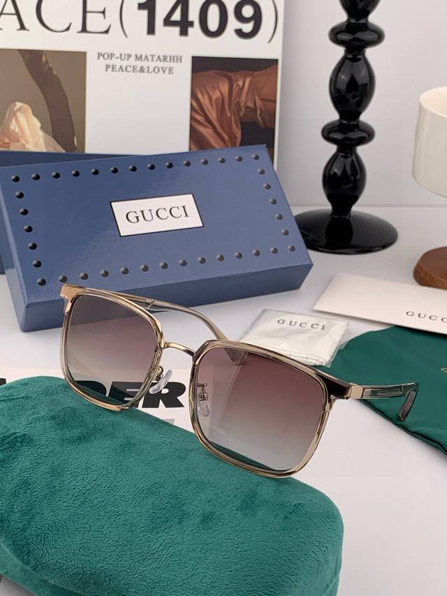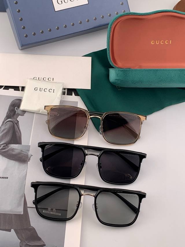 Gucci high-quality sunglasses for men and women, imported Polaroid polarized lenses, perfect for driving, fishing, or other occasions. Korean-style men's aviator sunglasses with large frames and UV protection for drivers. Model: G5910