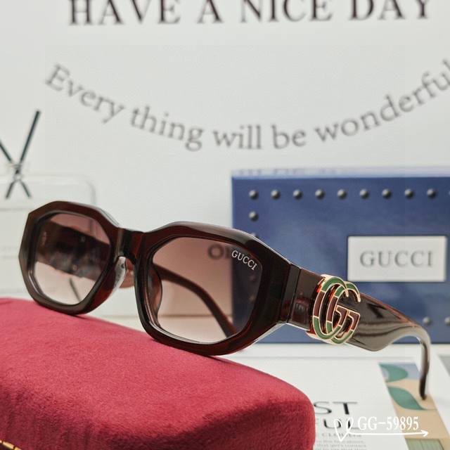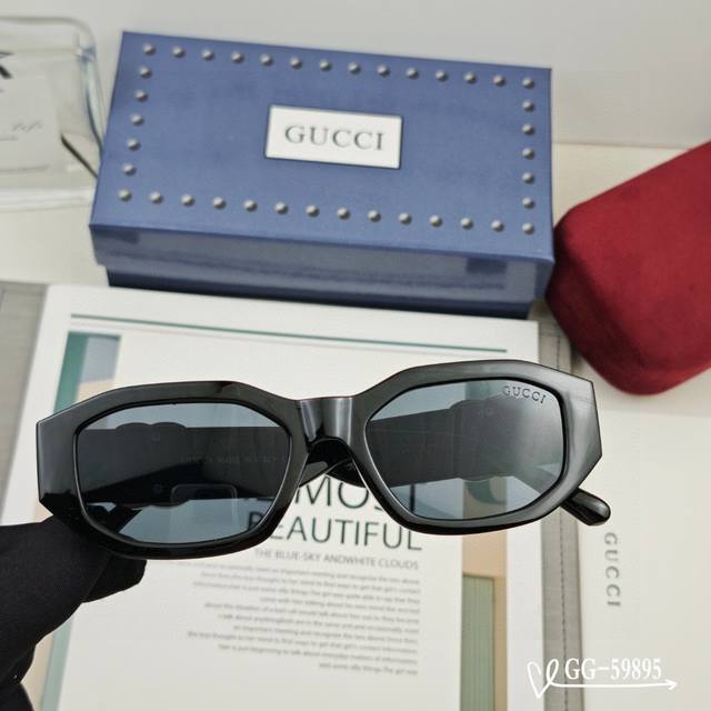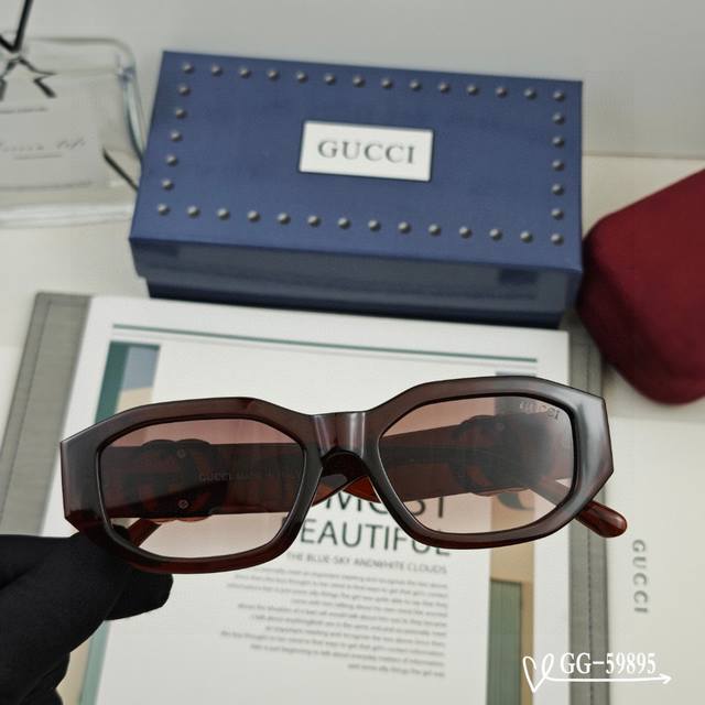 . New Gg sunglasses reduce the burden of glare, block harmful light and protect against radiation. Essential for travel and even driving! Leading a new fashion concept, keep the sun out of your way. Model: 59895