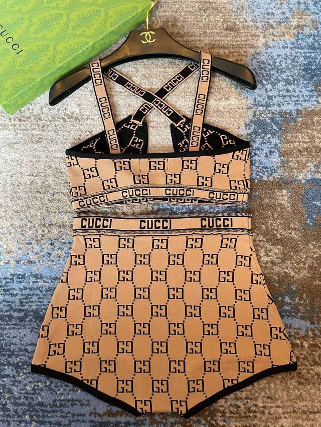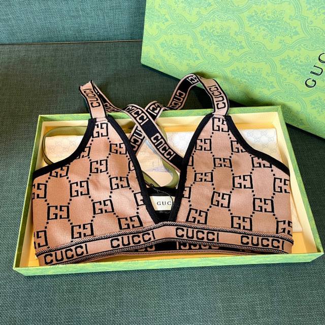 / Gucci knitted bikini set two-piece swimsuit Ff letter print tube top underwear +