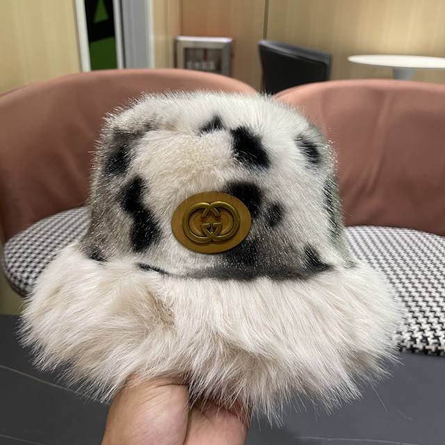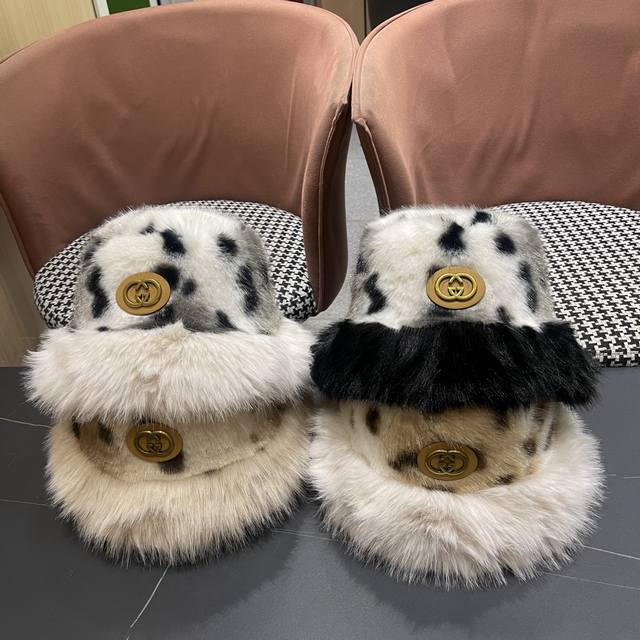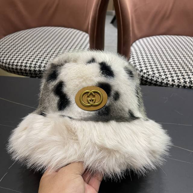 Gucci's new fur mixed color bucket hat, a must-have for autumn and winter, versa