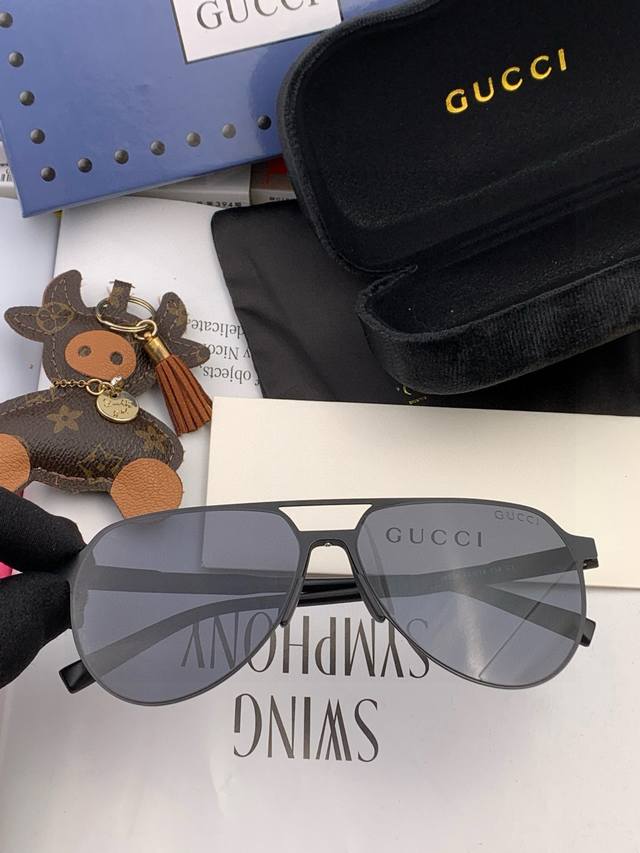 Gucci Men's Colorful Aviator Polarized Sunglasses. Material: High-definition nylon, thickened slot, high-definition polarized lenses, frameless frame. Model: G5807