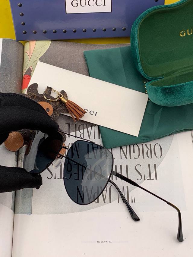 Gucci Men's Colorful Pilot Polarized Sunglasses. Material: High-definition nylon with thickened card slots, high-definition polarized lenses, frameless frame. Model: G1120