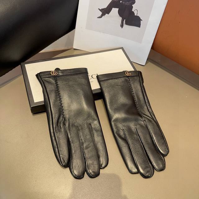 Gucci Men's New Sheepskin Gloves, stylish gloves, warm fleece lining for autumn and winter, classic and simple design, super comfortable and soft to wear, versatile! Sizes L, XL