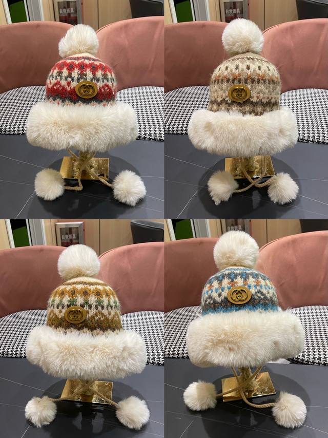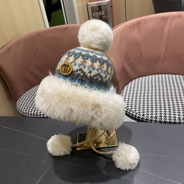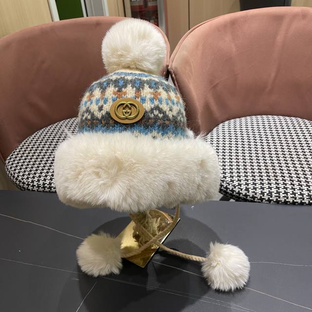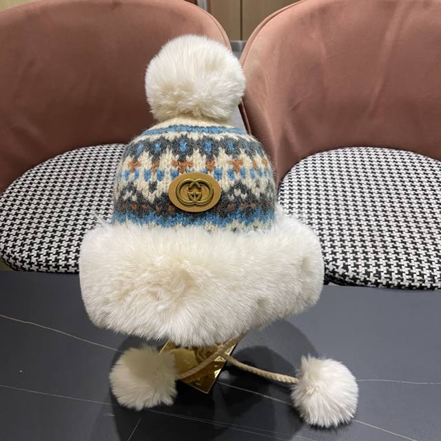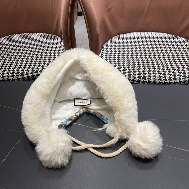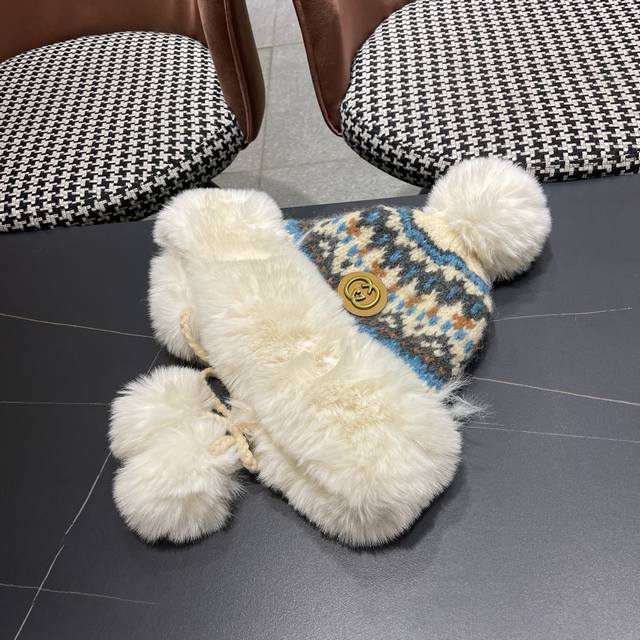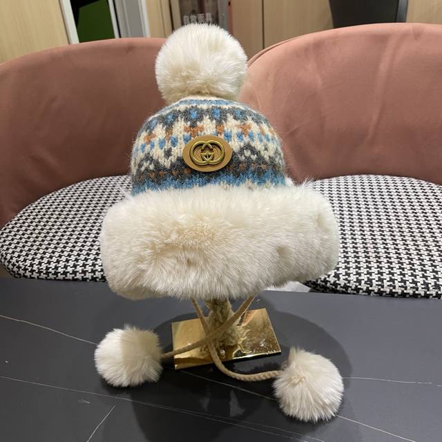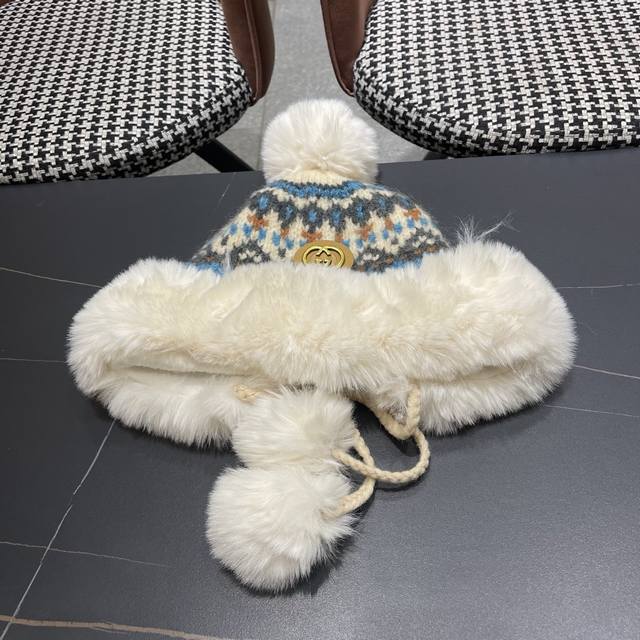 Gucci Meridian Fleece-lined Lei Feng Hat for Women, Autumn and Winter Thickened Warm DDD Cycling Earflap Knitted Wool Hat Northeast Ski Hat DDD