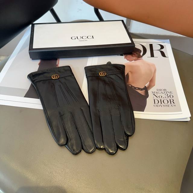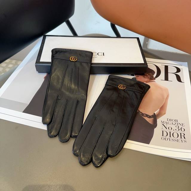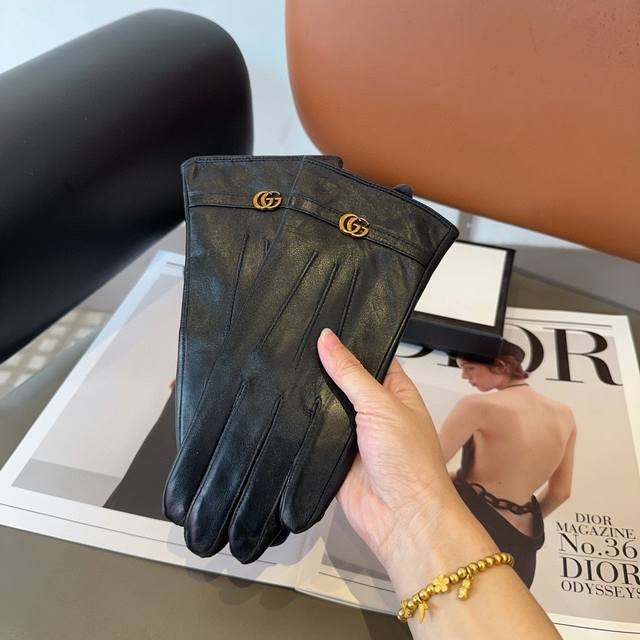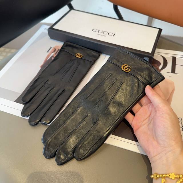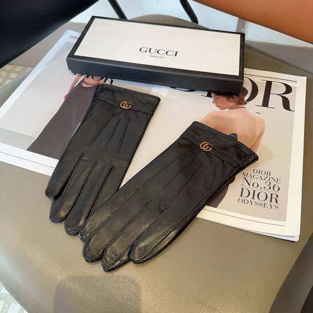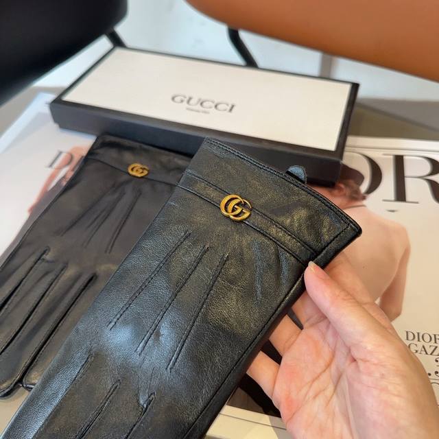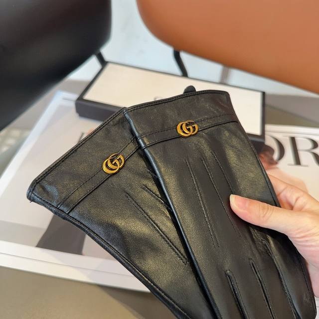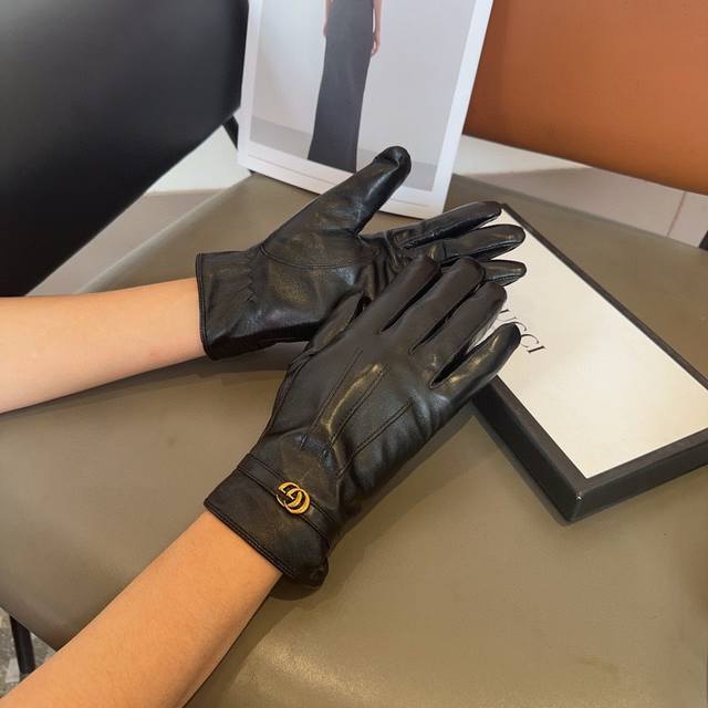 Gucci sheepskin gloves, fashionable gloves, warm fleece lining for autumn and winter, classic and simple design, super comfortable and soft to wear, versatile. ML