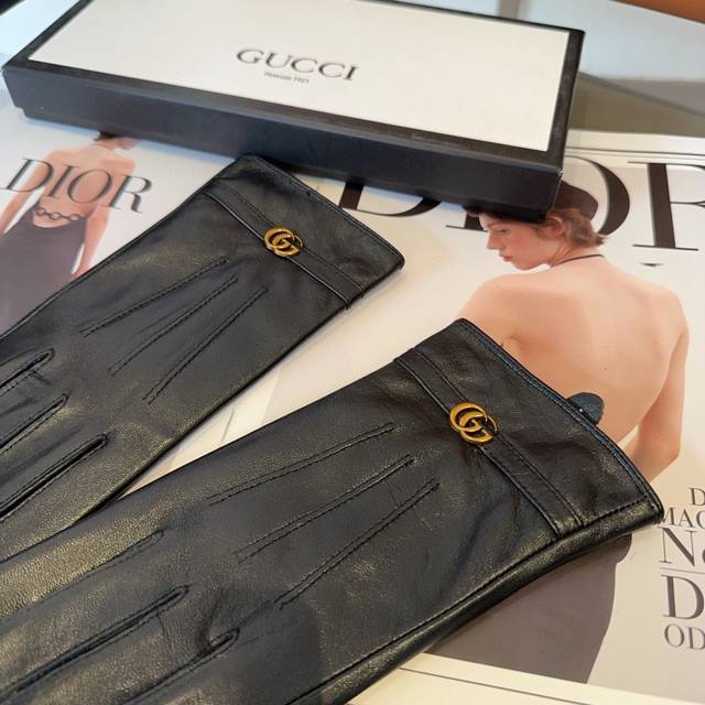 Gucci sheepskin gloves, fashionable gloves, warm fleece lining for autumn and wi