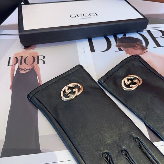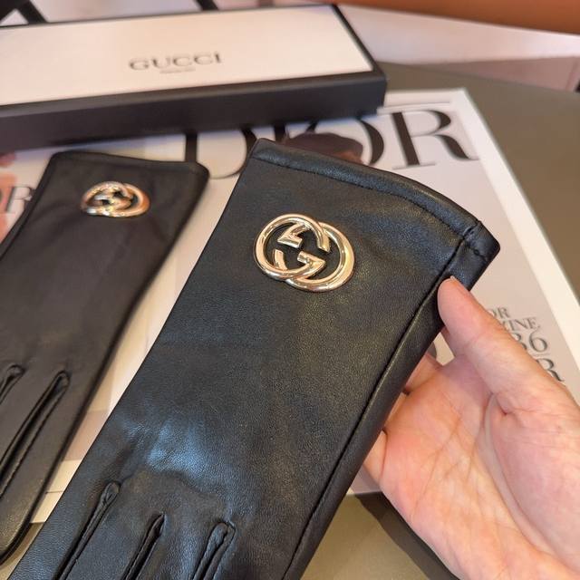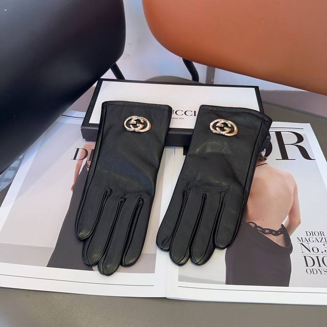 Gucci sheepskin gloves, fashionable gloves, warm for autumn and winter with fleece lining, classic and simple design, super comfortable and soft to wear, versatile.