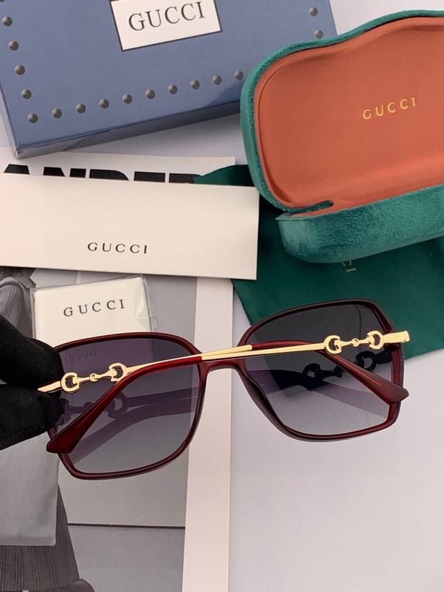 Gucci Sunglasses 2025 New Style. The square frame design is elegant and visually slims the face, making it appear smaller. Suitable for all face shapes. The retro horsebit design paired with unique purple lenses gives it a vintage feel, making it versatile and stylish. The temples feature Gucci's classic horsebit element, adding a retro and fashionable touch. Wearing them makes you look like a walking fashion magazine cover model: G8303.
