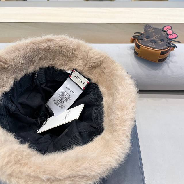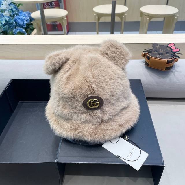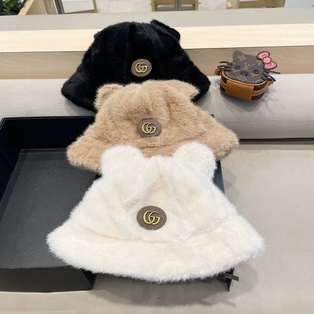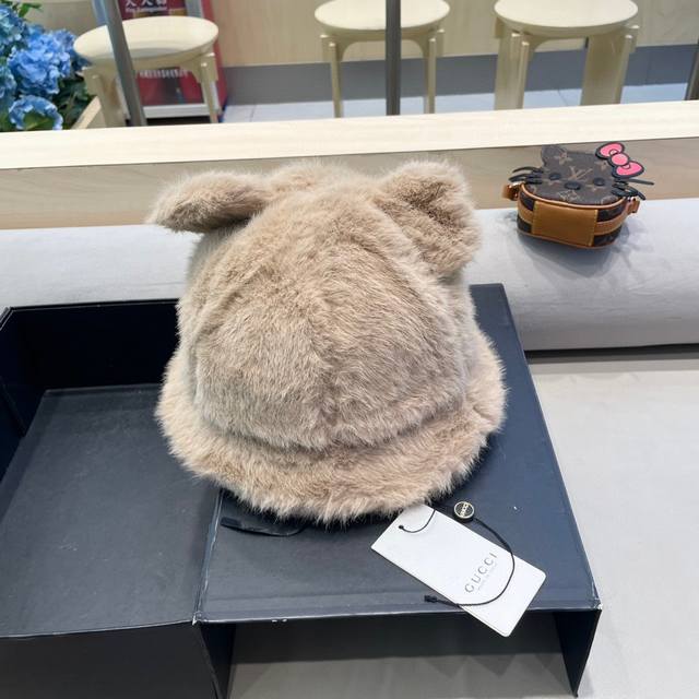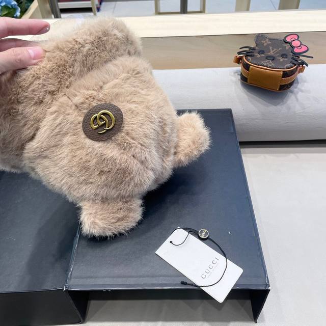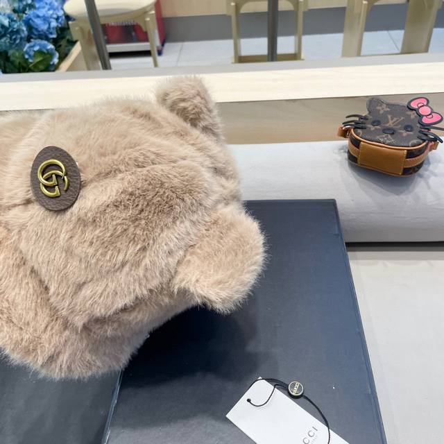Gucci warm bear ear hat women's winter plush cold-proof ear protection face red panda Baotou basin hat