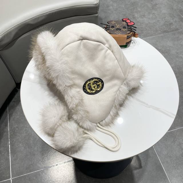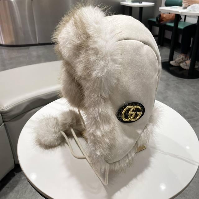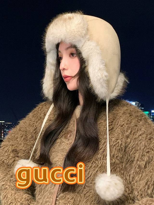 Gucci women's hat, autumn and winter, fleece-lined, thick, warm, ear-protecting, Lei Feng hat, Korean style, versatile, cold-proof, cycling, skiing, head covering.