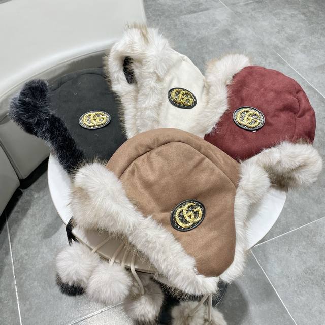 Gucci women's hat, autumn and winter, fleece-lined, thick, warm, ear-protecting,