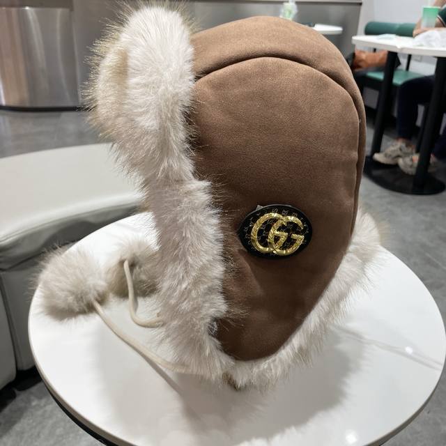 Gucci Women's Hat, Autumn/Winter, Fleece-lined, Thick, Warm, Ear-protecting, Lei Feng Hat, Korean Style, Versatile, Cold-proof, Cycling, Skiing, Headband Hat