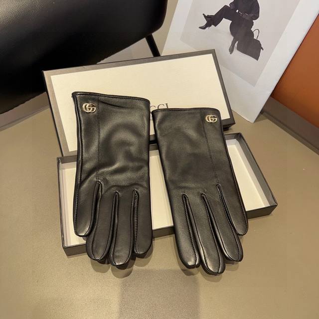 Gucci women's new sheepskin gloves, fashionable gloves, warm and velvet lining for autumn and winter, classic and simple, super comfortable and soft, versatile! Ml